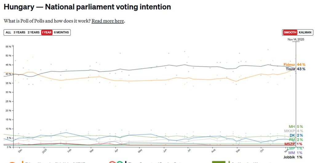 Sebestyén Géza, az MCC Gazdaságpolitikai Műhelyének vezetője szerint figyelemre méltó fejlemény, hogy a kormánykritikusnak tartott Politico legfrissebb felmérése is a Fidesz vezetését mutatja a Tisza Párttal szemben. A legfrissebb „Poll of Polls” adatai szerint a Fidesz újra előnybe került a magyar pártok versenyében, miután korábban a TISZA Párt vezette az összesített listát. Elemzése alapján ez a tendencia összefüggésben állhat a forint erősödésével is.