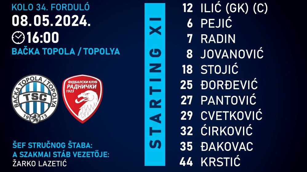 A topolyaiak 4:3-ra verték a kragujevaci Radničkit, ezzel pedig biztossá vált, hogy a bajnokságban nem végezhetnek a harmadiktól rosszabb helyen, sőt az ezüstérem megszerzésére is lehetőség mutatkozik, ugyanis a második helyen álló Partizan 3:3-as döntetlent játszott a Napredak vendégeként, így a belgrádi-fehérek előnye két pontra csökkent a TSC előtt. A bajnokságból még három forduló maradt hátra.