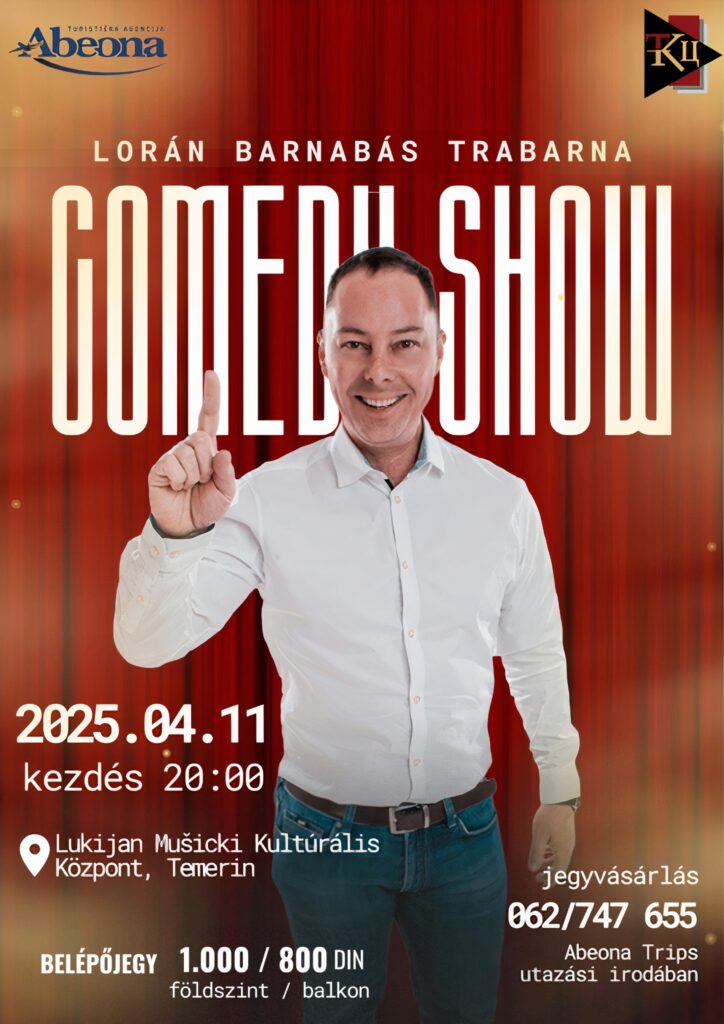 Április 11-én, pénteken érkezik Trabarna azaz Lorán Barnabás a nemzet hu-tyu-tyu-ja, a nép Trabantja, minden idők Barkasza Vajdaságba és egy fergeteges stand-up esttel várja az érdeklődőket.