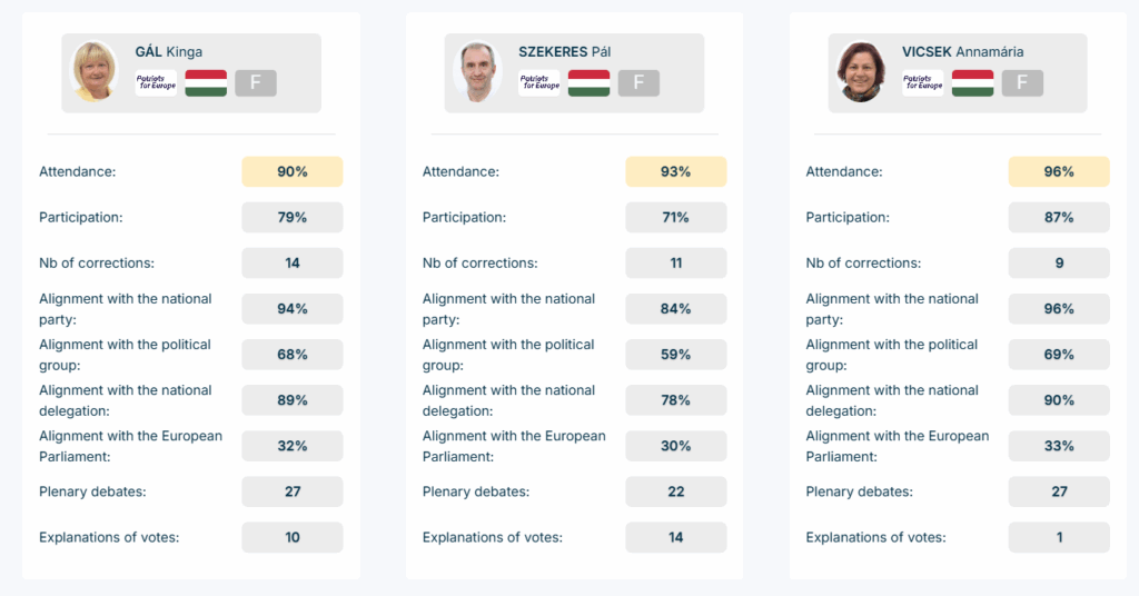 A statisztika szerint az uniós frakciójával való szavazási egyezése 47 százalék, míg a magyar nemzeti delegációval mindössze 28 százalékban szavaz egy irányba – vagyis ritkán van egy hullámhosszon saját hazájával.